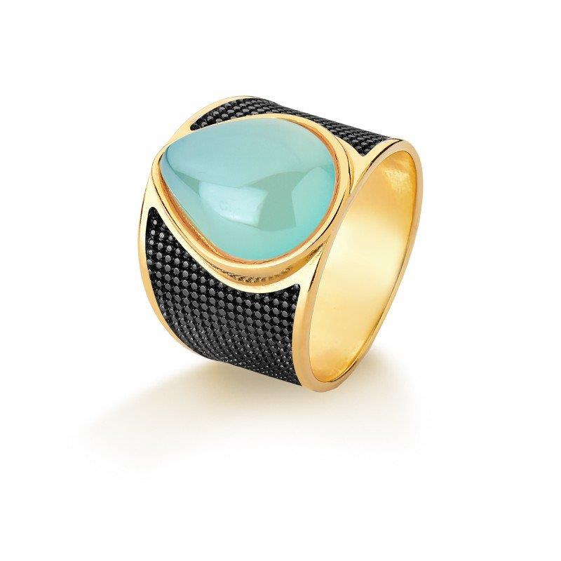 ANEL FOLHEADO A OURO E RÓDIO NEGRO