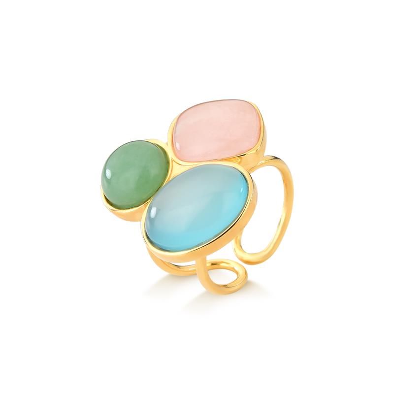 Anel de regulagem com pedras cabochão no formato oval 11x15mm, quadrada 12x12mm e redonda de 10mm. É possível regular o anel facilmente do número 14 até o número 24.