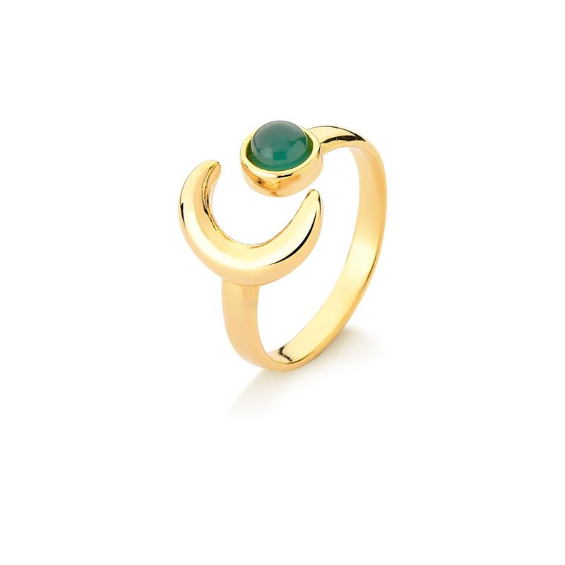 COLEÇÃO ZEN. Anel de regulagem com pedra cabochão em formato redondo de 4mm. A Lua simboliza os ritmos biológicos, e as fases da vida. A Lua é passiva, receptiva. É fonte e símbolo da feminilidade e da fecundidade. É a guia das noites, é o símbolo noturnos e do sonho.