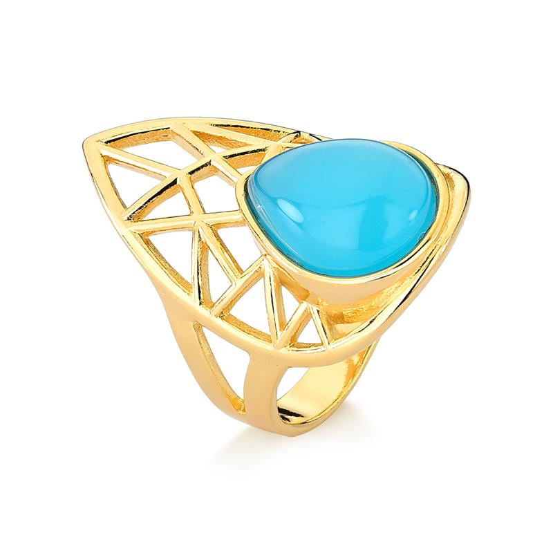 COLEÇÃO TRAMA.Anel em pedra cabochão em formato de gota 10x14mm.