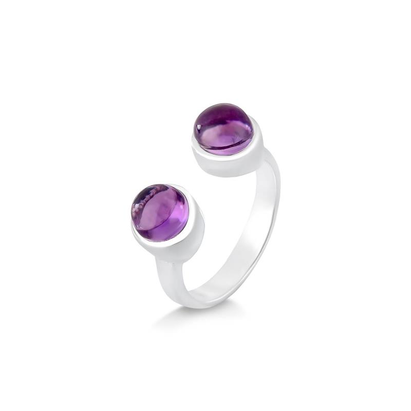 COLEÇÃO AMETISTA.Anel de regulagem com duas pedras cabochão no formato de redondo de 6,5mm.