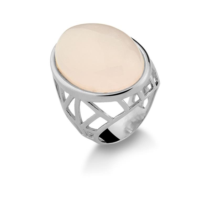COLEÇÃO TRAMA.Anel em pedra cabochão no formato oval de 18x25mm.
