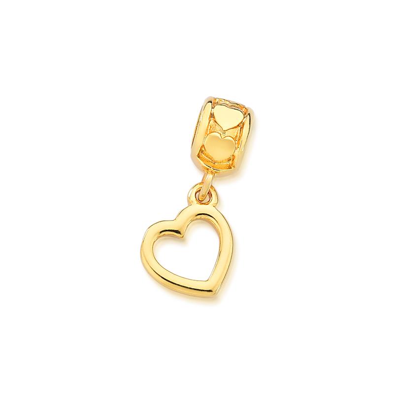 COLEÇÃO BERLOQUES.Berloque para pulseira, sem pedra, em formato de coração. Possui argola com textura de coração, tornando-se uma peça apaixonante.