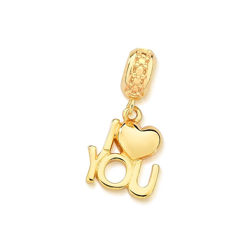 COLEÇÃO BERLOQUE.Berloque para pulseira, sem pedra, em formato I ♡ YOU. Possui detalhes que simulam zircônia, a tornando uma peça única e delicada.