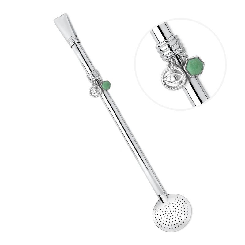 LINHA TRADIÇÃO. Tamanho da bomba: 23cm e 25cm. Tamanho dos pingentes: 1cm à 2cm. Tamanho da pedra: cabochão hexágono 8x9mm. Material da bomba: aço inox Acompanha caixinha e escova para limpeza da bomba.