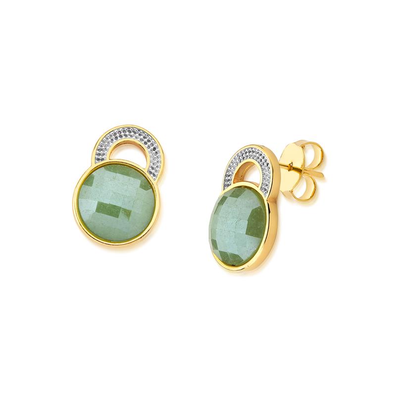 COLEÇÃO FACETADA PEROLADA. Brinco com pedra natural facetada, com efeito perolado, no formato redondo de 12mm. Possui detalhes com aplicação de caneta de ródio negro. Altura total da peça: 2,1cm.