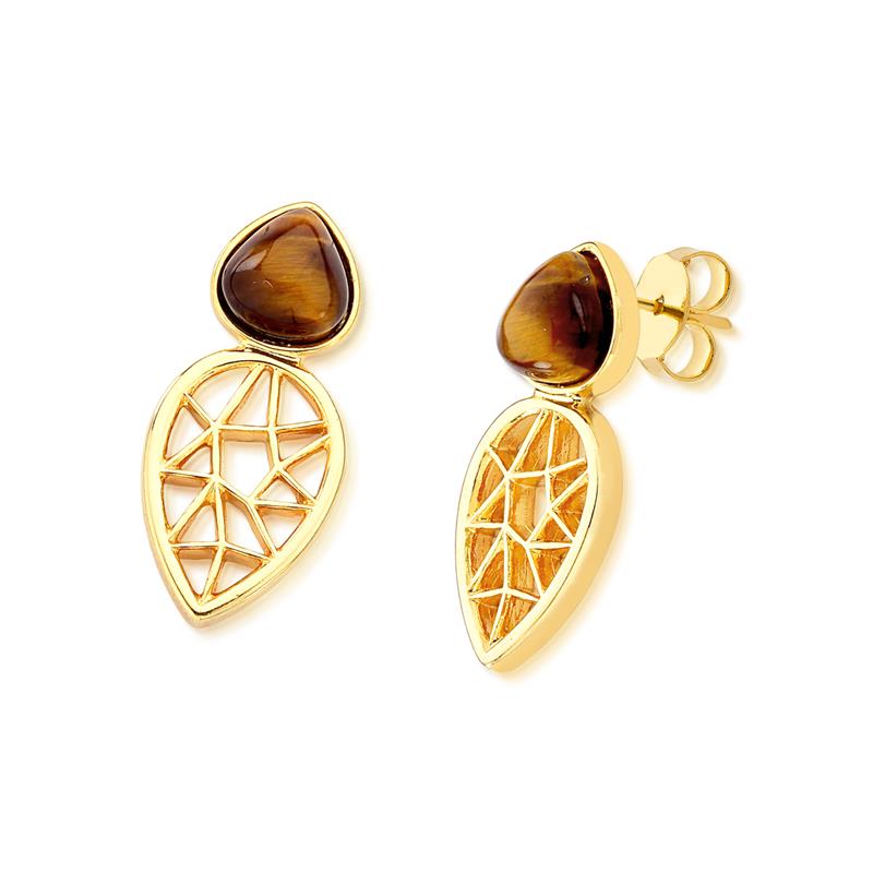 COLEÇÃO TRAMA. Brinco com pedra cabochão, mo formato de gota 8,65mm. Possui detalhes em metal, transformando-se em tramas, trazendo o formato de gota para armonizar com o desenho da pedra. Altura total do brinco:2,7cm.