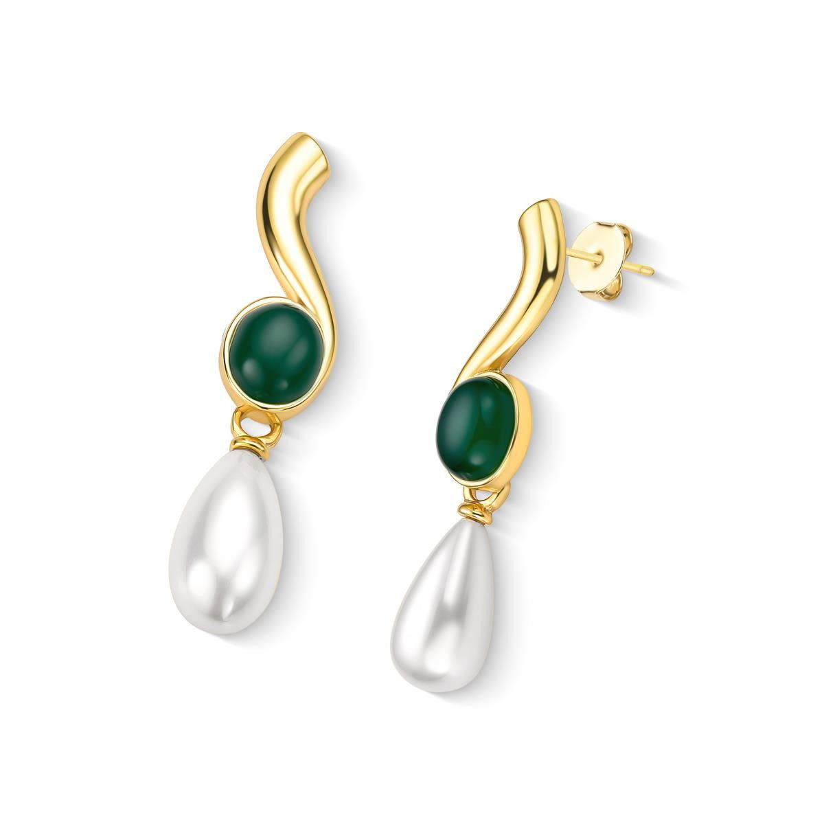 Tamanho da pedra: pedra cabochão em formato oval 8x10 mm e pérola shell de 1,7cm.
