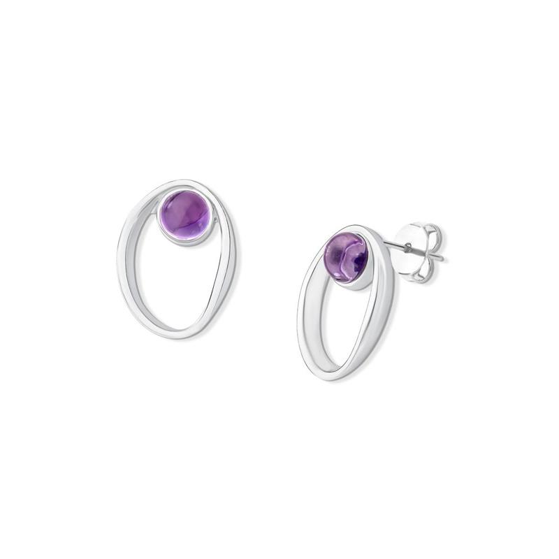 COLEÇÃO AMETISTA.Brinco com pedra cabochão, no formato redondo de 6,5mm.