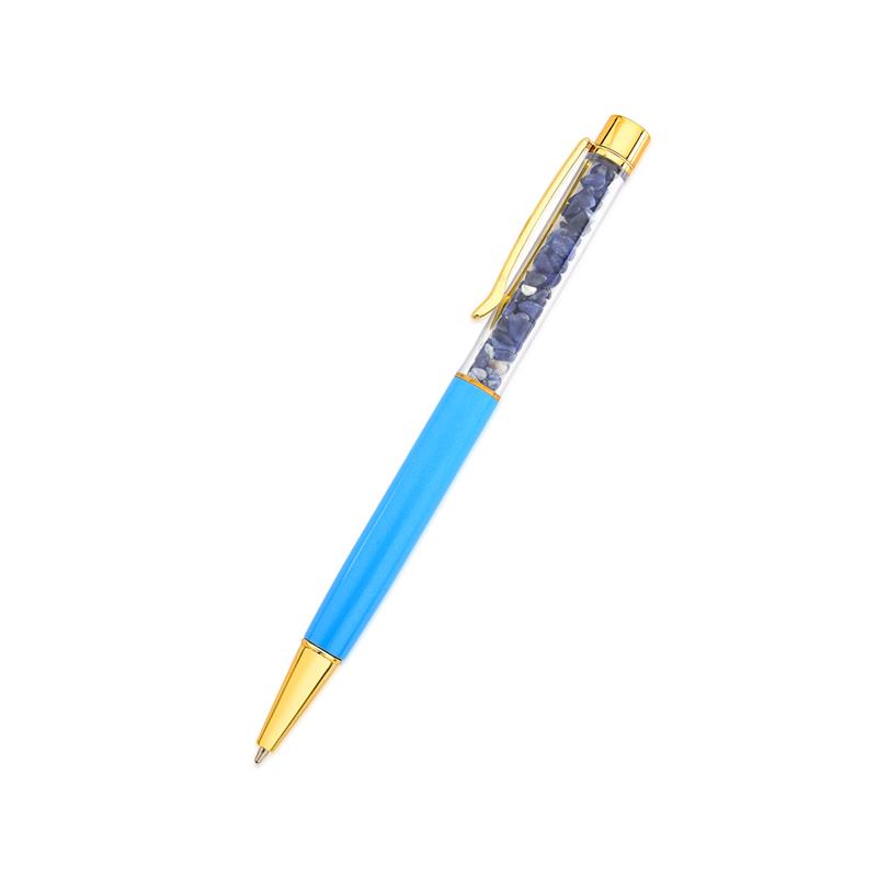 CANETA DOURADA COM PEDRAS NATURAIS - AZUL