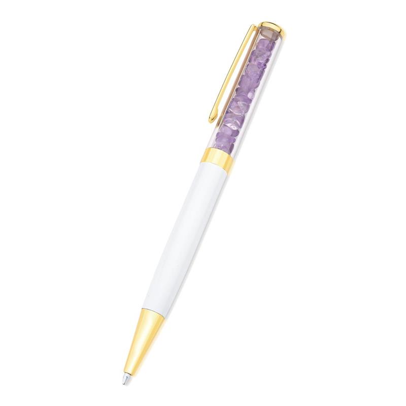 CANETA DOURADA COM PEDRAS NATURAIS - BRANCA