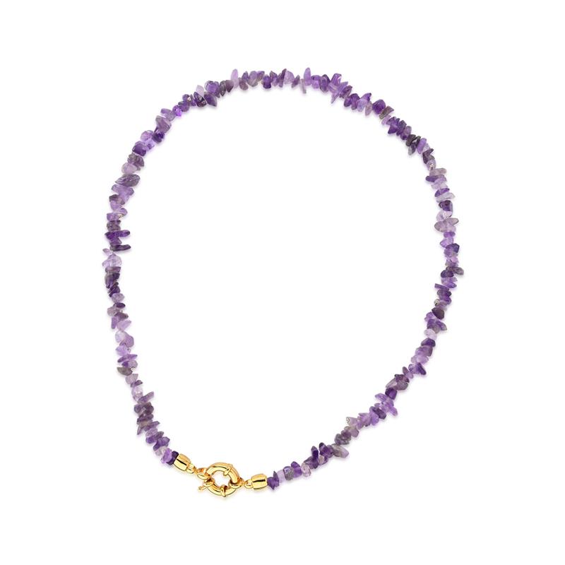 LINHA RÚSTICA. Colar de pedras naturais, feito de pequenos cascalhos polidos de pedra Ametista. Pode ser usado 2 em 1: com um pingente em seu fecho, compondo seu look, ou apenas o colar. Tamanho pode variar um pouco de 38cm até 42cm.