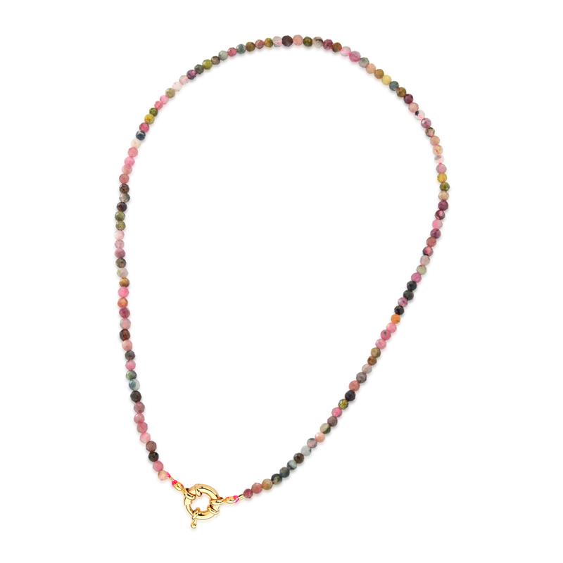LINHA RÚSTICA. Colar de pedras naturais, feito com pequenas esferas facetadas em Turmalina Multicolor. Pode ser usado 2 em 1: com um pingente em seu fecho, compondo seu look, ou apenas o colar. Possui aproximadamento 40cm sem extensor.