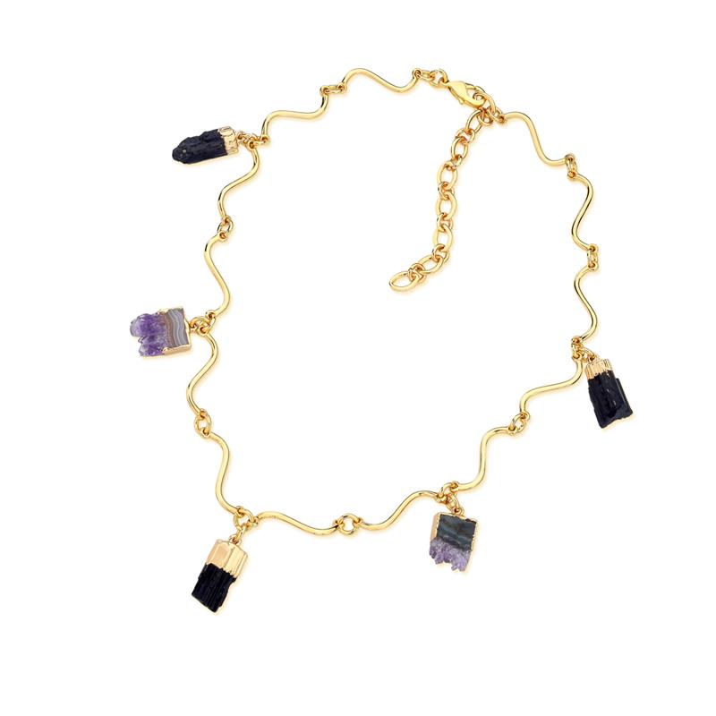 COLEÇÃO RARIDADE.Colar de pedras, turmalina negra bruta e geodo natural, as pedras possuem tamanhos e formatos irregulares.