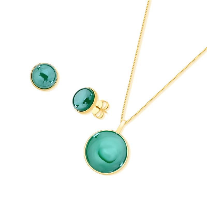 Conjunto folhado a ouro com efeito perolado Pingente folhado a ouro com pedra redonda de 20MM Brinco folhado a ouro com pedra redonda de 12MM Veneziana de 43 cm com 7 de extensor