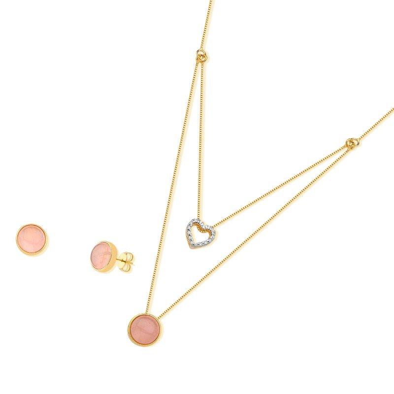 CONJUNTO FOLHEADO A OURO E RÓDIO BRANCO