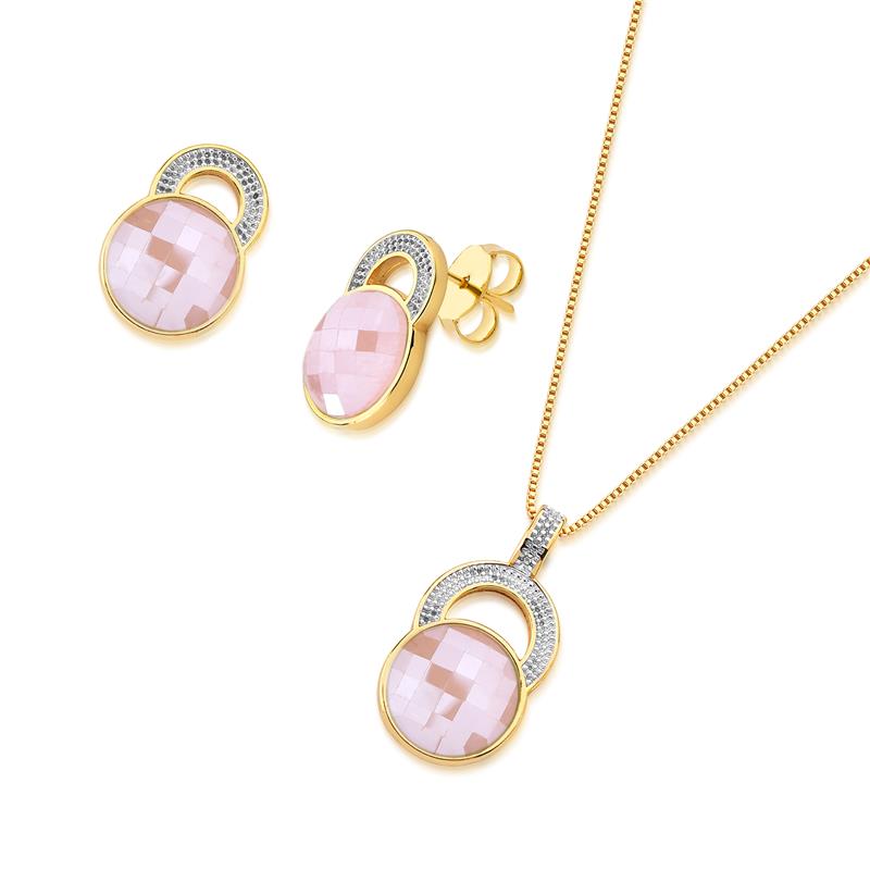 COLEÇÃO FACETADA PEROLADA.O conjunto é composto por brinco com pedra natural facetada, com efeito perolado, no formato redondo de 12mm. Acompanha pingente de mesma pedra. Possui detalhes com aplicação de caneta de ródio branco. Corrente veneziana de 43cm + 7cm de extensor.