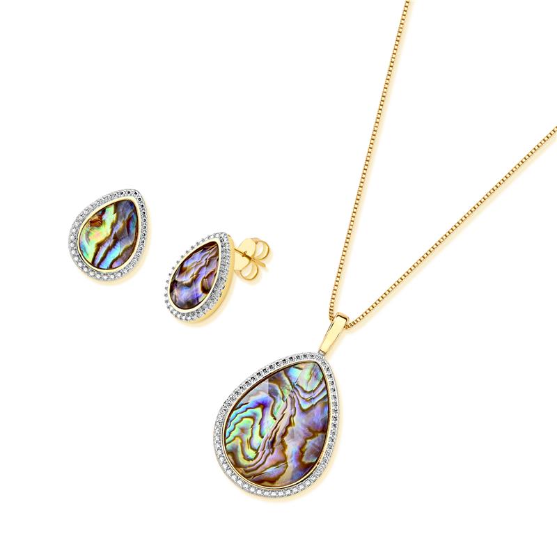 COLEÇÃO CONCHAS.Conjunto é composto por brinco com pedra de concha sobreposta por um cristal facetado, no formato de gota 10x14mm, acompanha pingente com pedra de concha sobreposta por um cristal facetado no formato de gota 18x25mm.