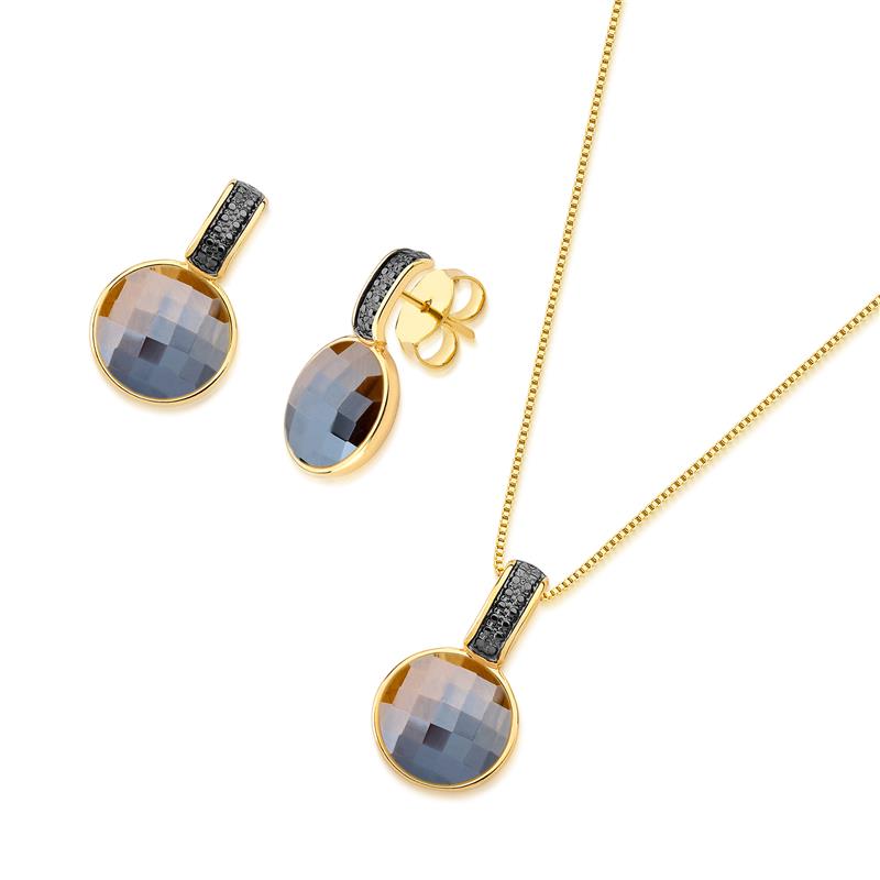 CONJUNTO FOLHEADO A OURO E RÓDIO NEGRO