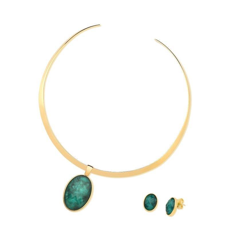 CONJUNTO FOLHEADO A OURO : 030224543 Facebook X Pinterest WhatsApp GRADE DE TAMANHOS E CORES : COLEÇÃO GLAMOUR, Brinco oval 10x14mm, Pingente oval 20x30mm, CHOKER : COLEÇÃO GLAMOUR, Brinco oval 10x14mm, Pingente oval 20x30mm, CHOKER × × : ESMERALDA CONJUNTO