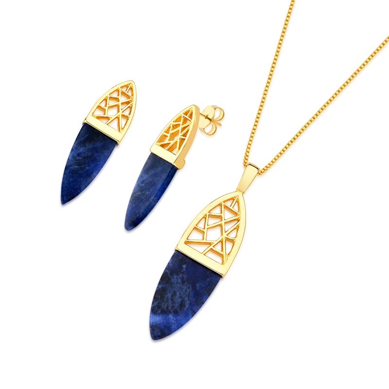 COLEÇÃO TRAMA.Conjunto é composto por brinco com pedra de chapa, no formato de lança 10x22mm, acompanha pingente com pedra de chapa em formato de lança maior14x25mm.