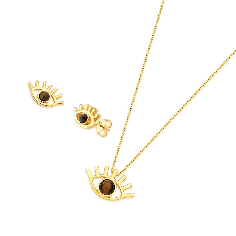 CONJUNTO FOLHEADO A OURO