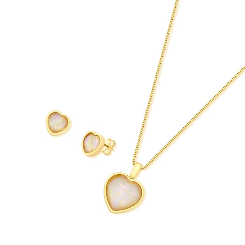 COLEÇÃO CONCHAS. Altura do brinco: 1cm. Altura do pingente: 2,3cm. Tamanho do colar: 43cm + 7cm de extensor. Tamanho da pedra do brinco: coração facetado 8x8mm. Tamanho da pedra do pingente: coração facetado 14x14mm.