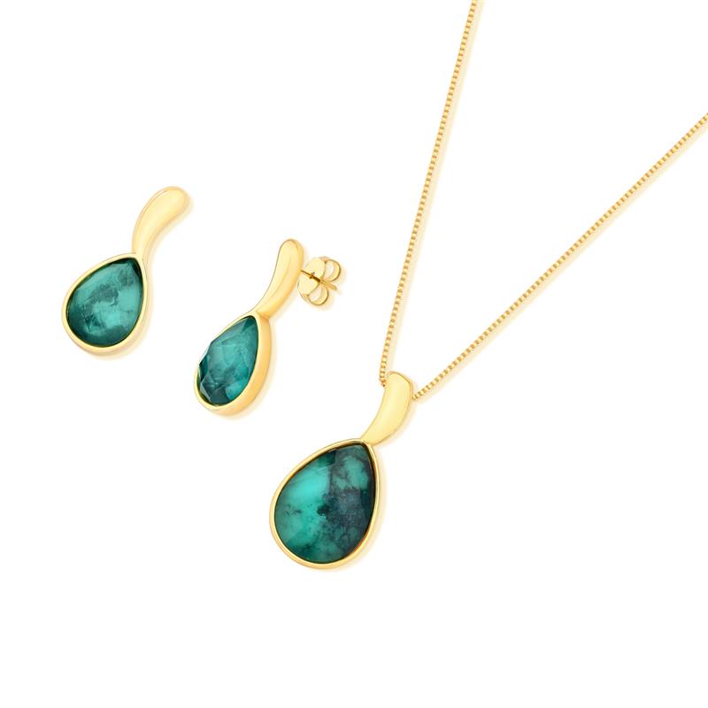 CONJUNTO FOLHEADO A OURO