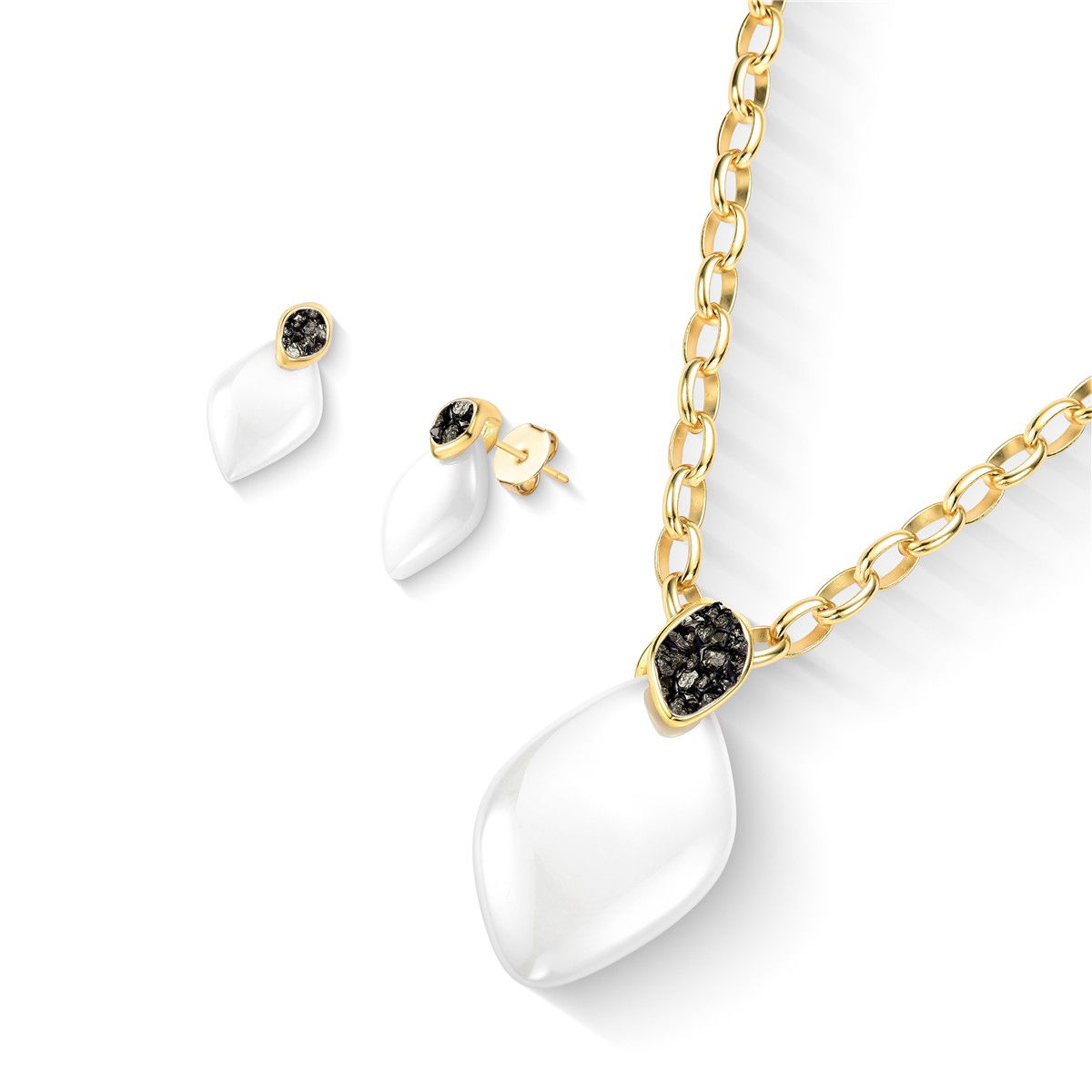 A Coleção Aura traduz a essência do boho chic em uma leitura moderna. Peças em porcelana perolada se unem a concha nautilus e pedras fragmentadas, refletindo luz e texturas em formatos orgânicos.