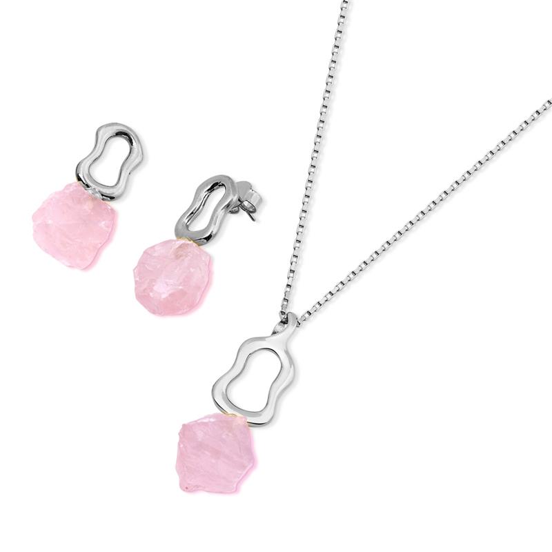 COLEÇÃO PEDRAS BRUTAS.Conjunto é composto por brinco com pedra natural bruta de formato e tamanho irregular. Acompanha pingente com mesma pedra. Corrente Veneziana de elos quadrados de 70cm sem extensor.