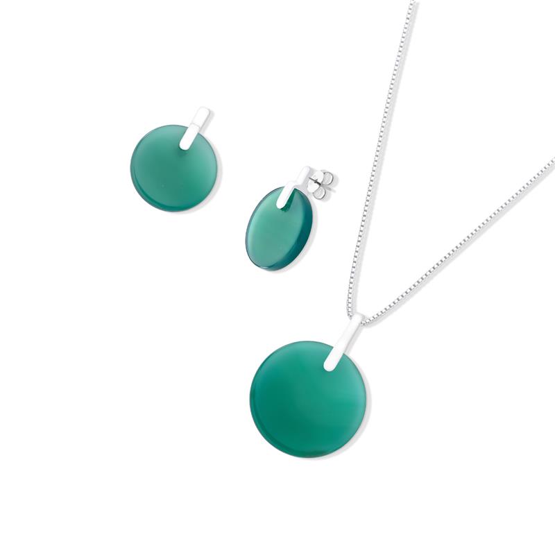 COLEÇÃO PRATA 925. Altura do brinco: 2cm. Altura do pingente: 3mm. Tamanho do colar: 45cm Tamanho da pedra do brinco: chapa redonda 15mm. Tamanho da pedra do pingente: chapa redonda 20mm.