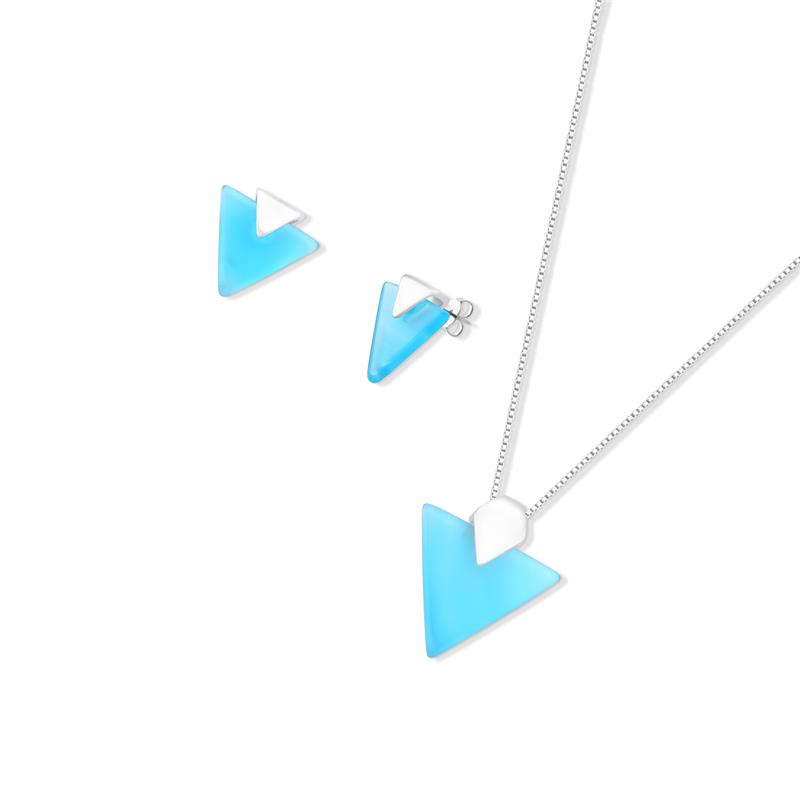 COLEÇÃO PRATA 925. Altura do brinco: 1,6cm. Altura do pingente: 2,8mm. Tamanho do colar: 45cm Tamanho da pedra do brinco: chapa triângulo 14x14mm. Tamanho da pedra do pingente: chapa triângulo 19x19mm.