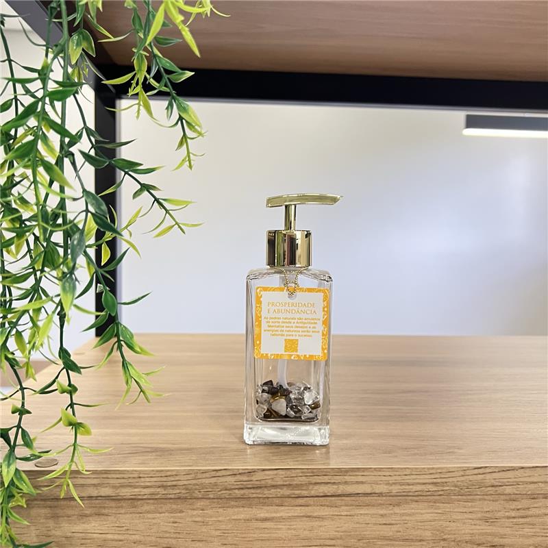 LINHA HOME DECOR.DISPENSER MULTIUSO COM PUMP DA PROSPERIDADE: As pedras naturais são amuletos de sorte desde a antiguidade. Mentalize seus desejos e as energias da natureza serão seus talismãs para o sucesso.