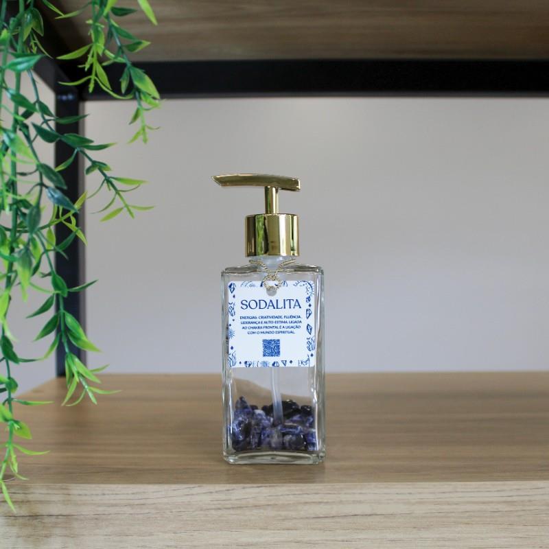 Nosso dispenser é de vidro e possui pedras naturais em seu interior, de formas e tamanhos irregulares.