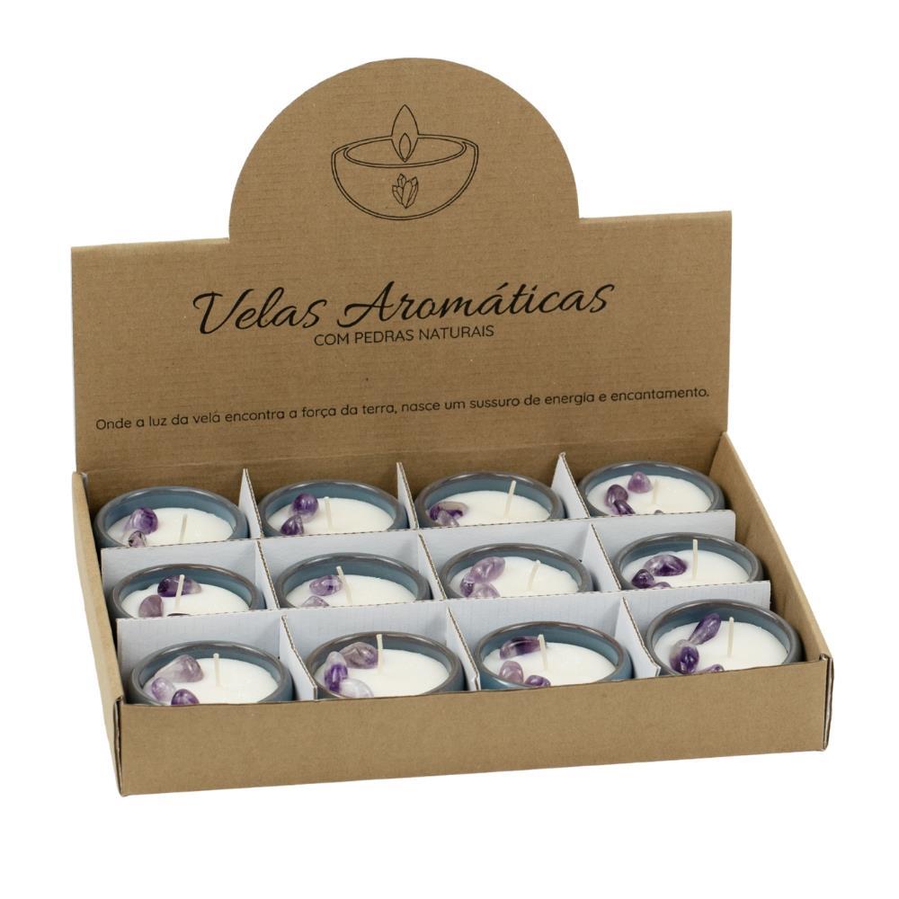 KIT DE VELAS AROMÁTICAS DE AMETISTAKit composto por 12 unidades de velas aromáticas com pedra naturais de ametista e seu aroma é de bambu.