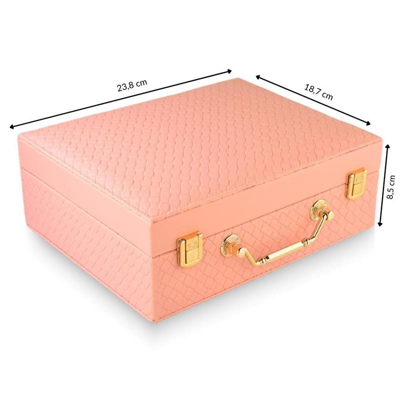 - Uma bandeja (solta) com 5 cortes para anel e 11 espaços para peças maiores.