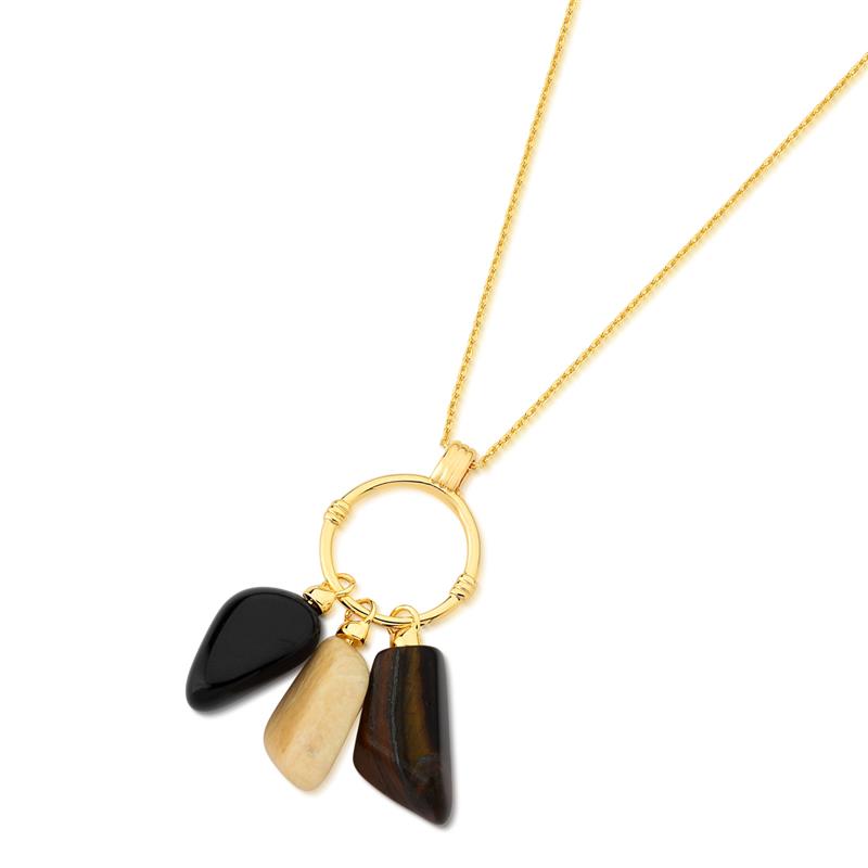 COLEÇÃO TALISMÃ DA SORTEPingente com três pedras naturais de cascalhos polidos de tamanhos e formatos variados. Acompanha corrente Cartier 60cm + 7cm de extensor.