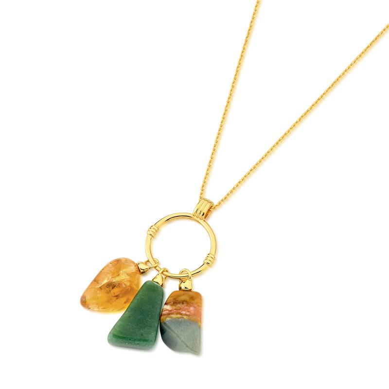 COLEÇÃO TALISMÃ DA SORTEPingente com três pedras naturais de cascalhos polidos de tamanhos e formatos variados. Acompanha corrente Cartier 60cm + 7cm de extensor.