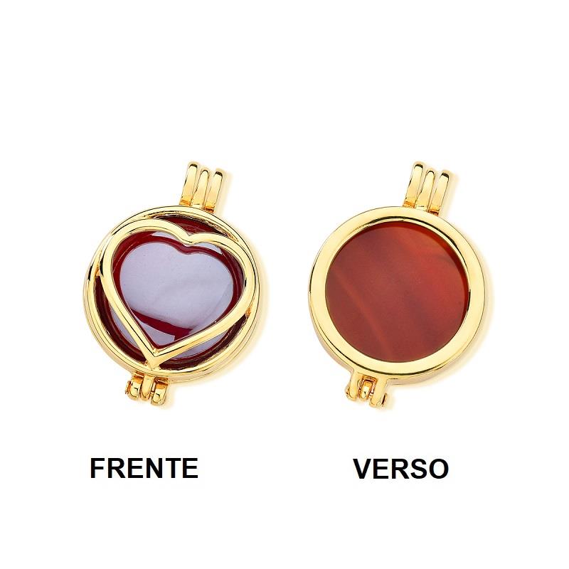 COLEÇÃO RELICÁRIO.Pingente relicário com pedra cabochão com efeito perolado, no formato redondo de 20mm. Possui desenho de coração na parte da frente, tornando-se uma peça apaixonante.