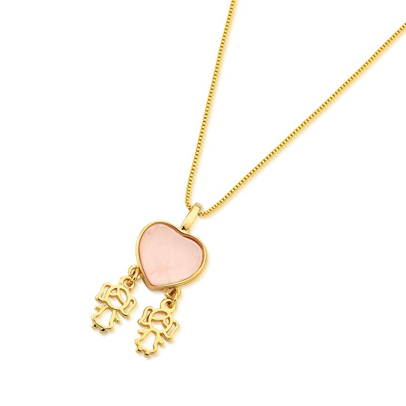 LINHA BÁSICA. Pingente com pedra cabochão em formato de coração 12x13mm. Possui 2 pingentes adicionais de meninas. Acompanha corrente Veneziana de 43cm + 7cm de extensor. Altura do pingente: 3,5cm.