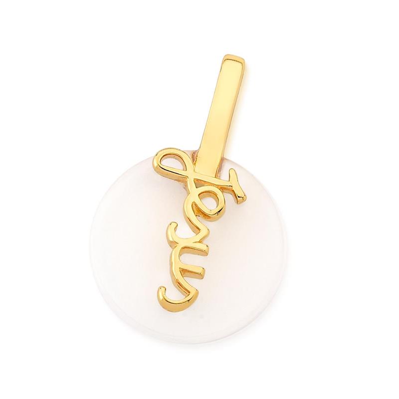 COLEÇÃO RELIGIOSA. Pingente avulso, sem corrente, com pedra de chapa no formato rendondo de 20mm. A peça possui uma escrita "Jesus", tornando a peça delicada e única. Altura da peça: 3,1cm.