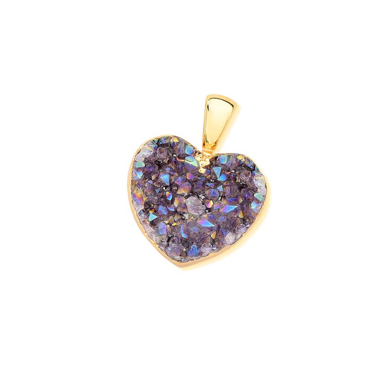 COLEÇÃO RARIDADE. Pingente avulso, sem corrente, com pedra em formato de coração de drusa. Por se tratar de pedras naturais, cada uma possui seu brilho e beleza, tornando-se uma peça única e exclusiva. As pedras variam de 2cm a 2,5cm. Altura total aproximada do pingente: 3cm a 3,5cm.