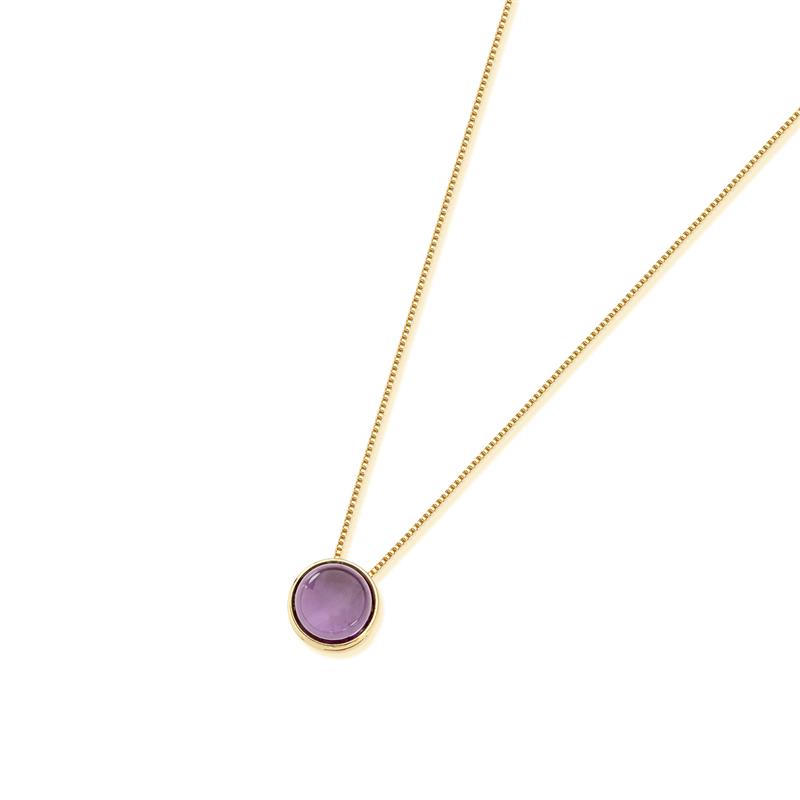 COLEÇÃO AMETISTA.Pingente com pedra cabochão, em formato redondo de 10mm. Acompanha corrente Veneziana de 43cm + 7cm de extensor. A pedra ametista traz o significado de sabedoria, equilíbrio, proteção, vitalidade, tem o poder acalmar emoções, simboliza a clareza e elevação espiritual. Por atuar como ponte entre o físico e o astral, a Ametista é uma pedra que pode ser usada também na interpretação de sonhos e para melhorar a nossa memória espiritual. Possui energia que auxília na tranformação e sabedoria. Corresponde ao Chakra Coronário.