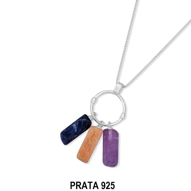 COLEÇÃO PRATA 925.Pingente com três pedras naturais de cascalhos polidos de tamanhos e formatos variados.