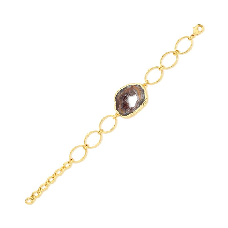 COLEÇÃO RARIDADE.Pulseira com pedra natural de geodo, extraida do interior de uma ágata, possuindo detalhes em drusa, com formato e tamanhos variados, tornando-se assim uma peça única. Possui 12cm de elos mais 7cm de extensor. As pedras variam de 2cm a 3,5cm.
