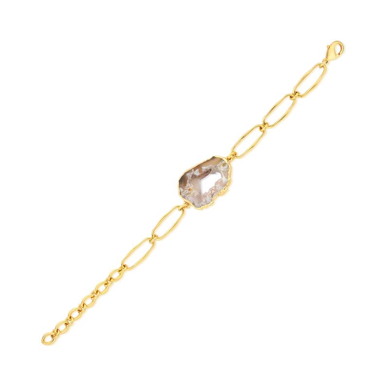 COLEÇÃO RARIDADE.Pulseira com pedra natural de geodo, extraida do interior de uma ágata, possuindo detalhes em drusa, com formato e tamanhos variados, tornando-se assim uma peça única. Possui 10cm de elos mais 7cm de extensor. As pedras variam de 2cm a 3,5cm.