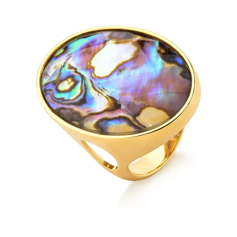 Composição de pedras: A técnica de composição de pedras naturais consiste na sobreposição de um cristal lapidado em facetas sobre uma fatia de pedra natural. Dessa forma, confere brilho e efeito óptico para peça com beleza única.